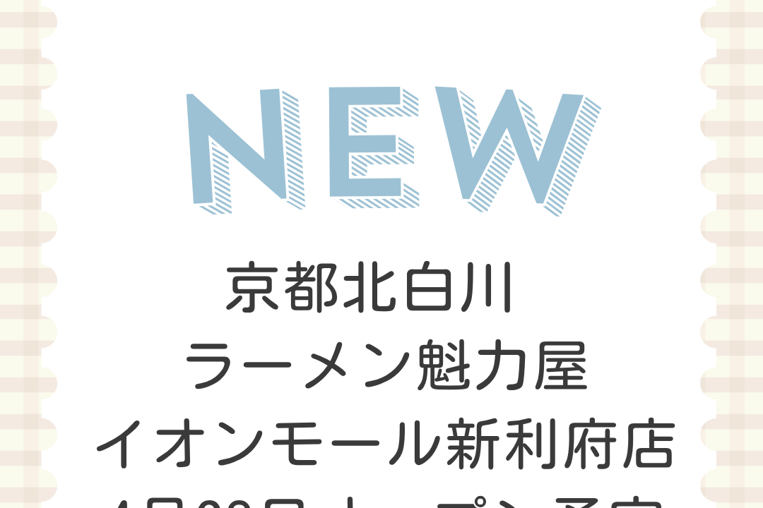 【宮城郡利府町】京都北白川 ラーメン魁力屋 イオンモール新利府店が4月28日にオープン予定